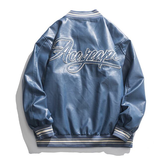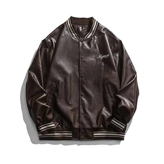ブルゾン スタジャン アウター メンズ PUレザー オーバーシルエット ロゴ ブラック/ブルー/ブラウン サイズ展開豊富 M/L/XL/2XL/3XL/4XL/5XL
