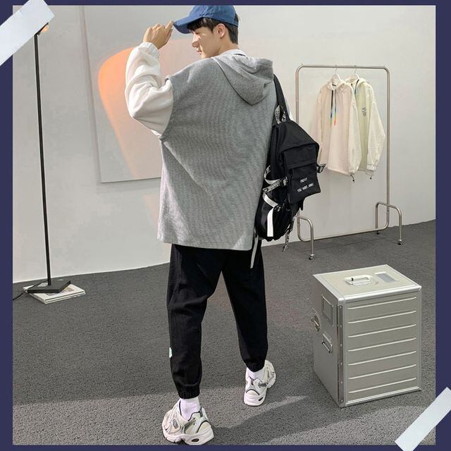 【予約販売】メンズ セットアップ 上下 スエット フーディー フード付き 無地 重ね着風 グレー ブラック 長袖 防寒 ジム スポーツウエア カジュアル 秋冬 大きいサイズ M/L/XL/2XL/3XL
