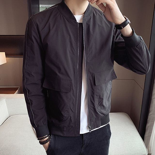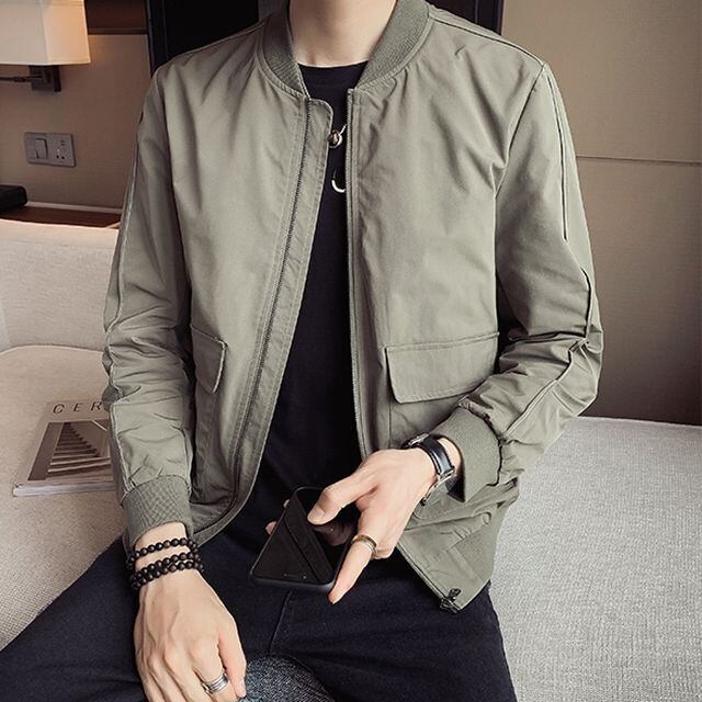 【予約販売】ブルゾン ミリタリー アウター メンズ シンプル 無地 お洒落 スタジャン ブラック カーキ こなれ感 ベーシック 秋 春 冬 通勤 大きいサイズ M/L/XL2XL/3XL