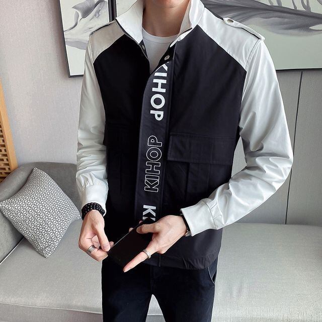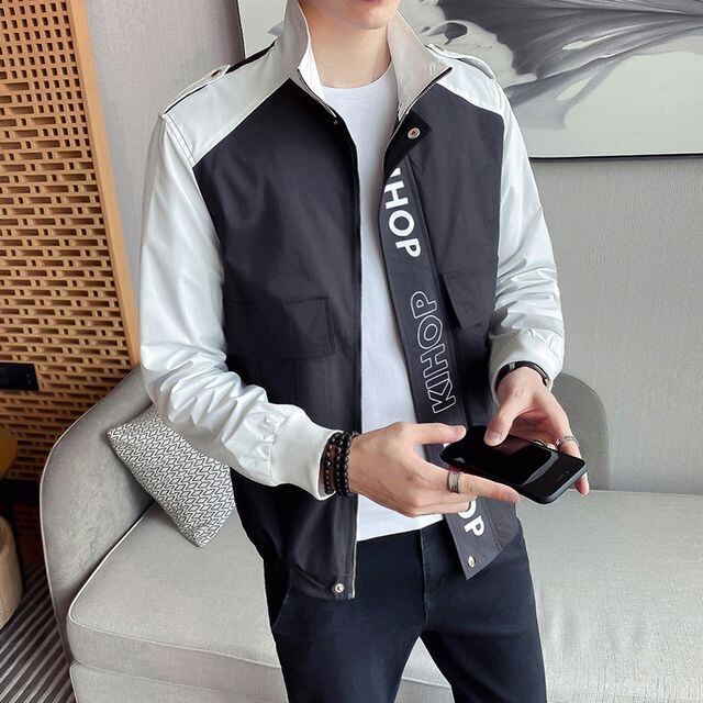 【予約販売】ジャケット メンズ アウター バイカラー ショート丈 ホワイト ブラック カジュアル スポーティー シック ベーシック 男前 こなれ感 お洒落 韓国 トレンド 春 秋 冬 M/L/XL/2XL/3XL
