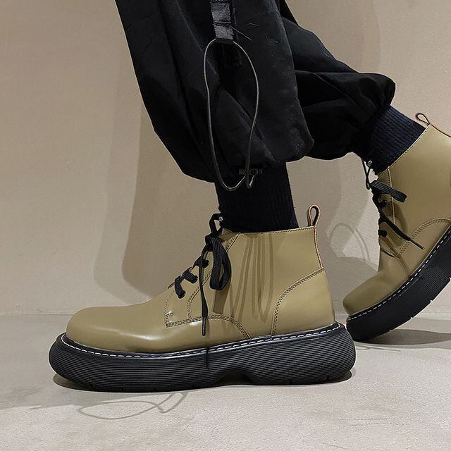 【予約販売】革靴 レザーシューズ メンズ ローファー 編み上げ ブーツ シューズ 靴 厚底 ブラック カーキ お洒落 カジュアル シック 24cm/24.5cm/25cm/25.5cm/26cm/26.5cm