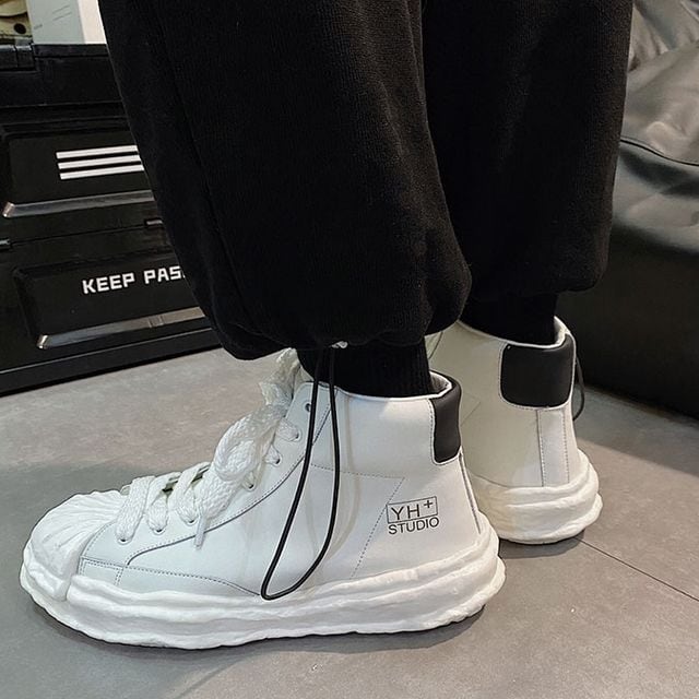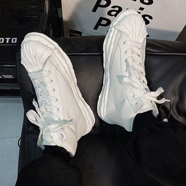 【予約販売】スニーカー ダッド メンズ ワンカラー ハイカット ブーツ 厚底 靴 ブラック ホワイト お洒落 カジュアル ストリート 韓国 KPOP BTS 24cm/24.5cm/25cm/25.5cm/26cm/26.5cm