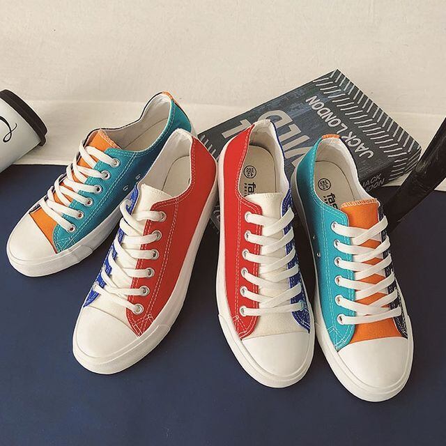 【予約販売】スニーカー メンズ レトロ バイカラー キャンバス 靴 ブルー レッド ホワイト お洒落 カジュアル ストリート 韓国 KPOP BTS 24.5cm/25cm/25.5cm/26cm/26.5cm