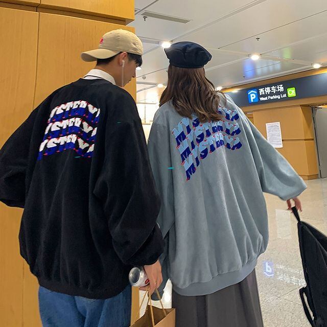 【予約販売】スタジャン バックプリント アウター ブルゾン コーデュロイ メンズ ユニセックス ブラック ブルー 防寒 お洒落 こなれ感 ベーシック 秋冬 韓国 トレンド 春 秋 冬 M/L/XL