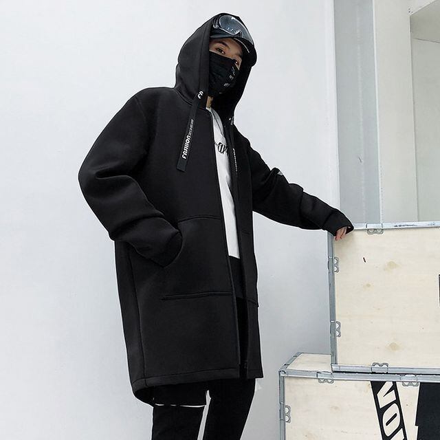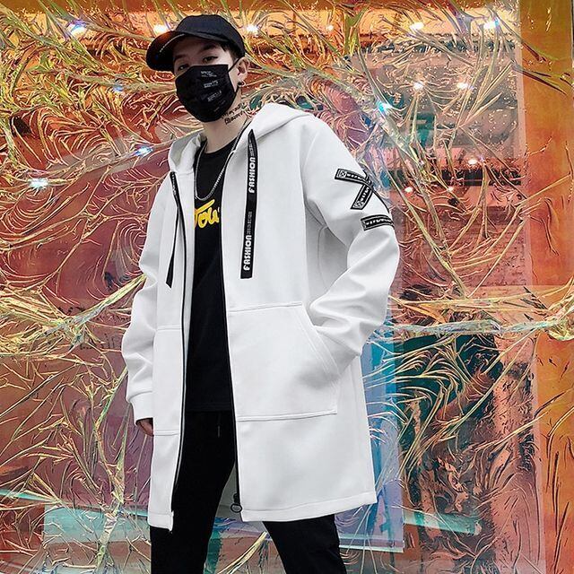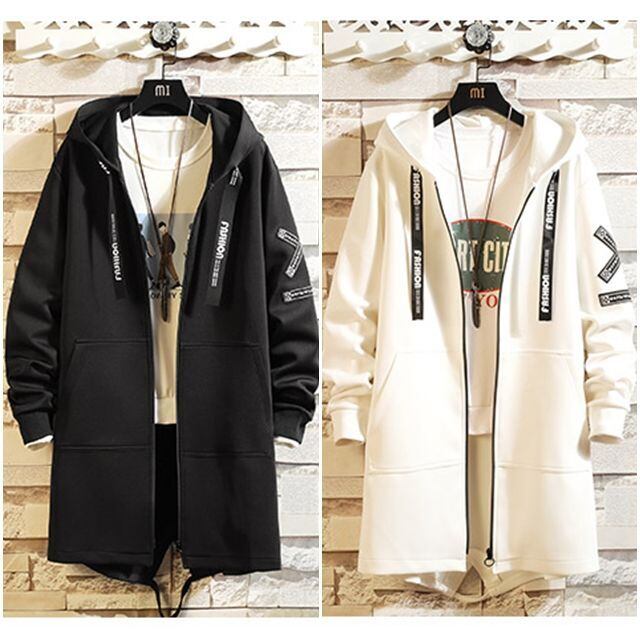 【予約販売】 コート メンズ アウター ミディアム丈 フード付 バッグデザイン モノトーン ホワイト ブラック カジュアル ジャージ スポーティー 男前 こなれ感 お洒落 韓国 トレンド 春 秋 冬 M/L/XL/2XL/3XL/4XL/5XL