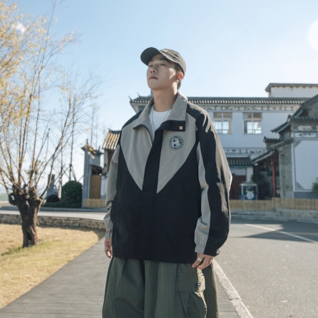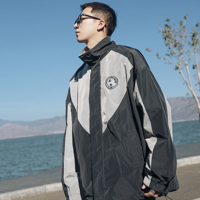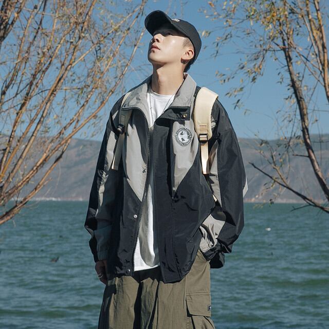 ブルゾン メンズ アウター シンプル バイカラー アウトドア かっこいい グレー/ブラック M/L/XL