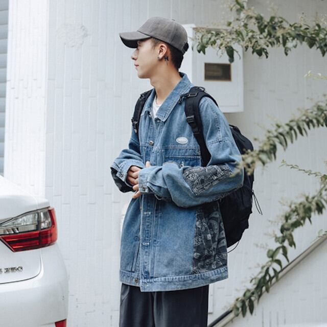 ジャケット メンズ デニムジャケット アウター ペイズリー Gジャン ブルー/ブラック M/L/XL/2XL