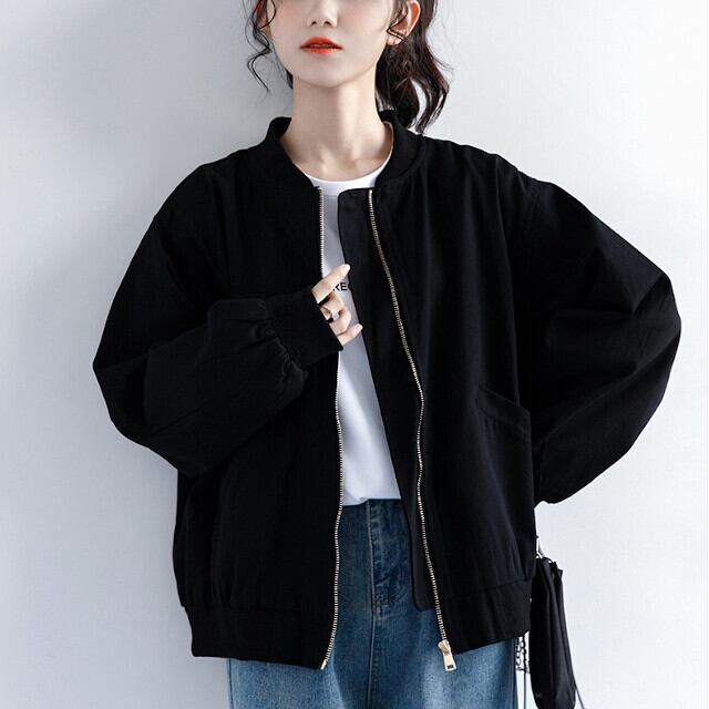 ブルゾン レディース アウター シンプル ジッパー カジュアル 上品 ショート丈 ブラック S/M/L
