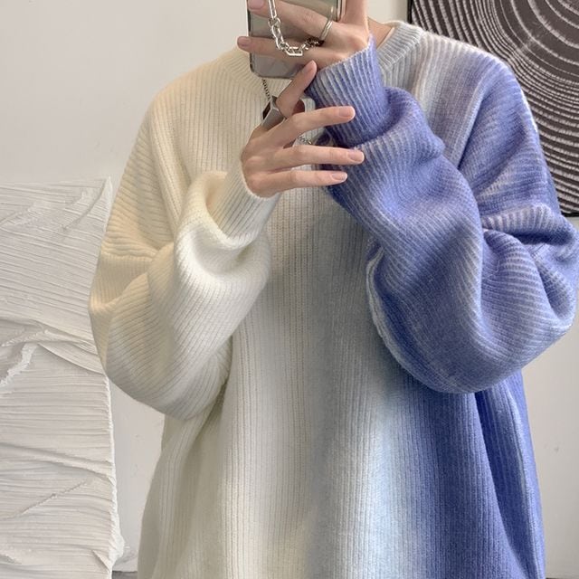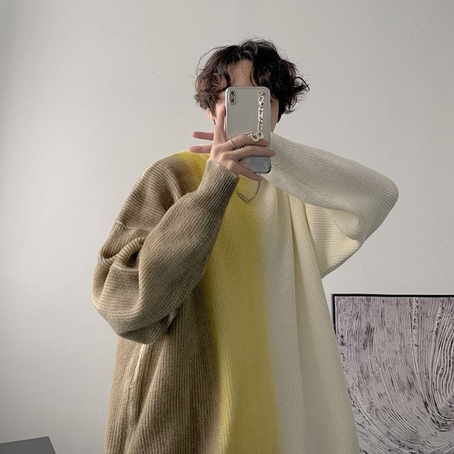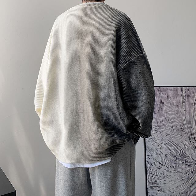 【予約販売】ニット グラデーション バイカラー オーバーサイズ メンズ シンプル イエロー ブルー ブラック セーター こなれ感 お洒落 韓国 トレンド 秋冬 M/L/XL