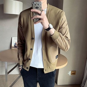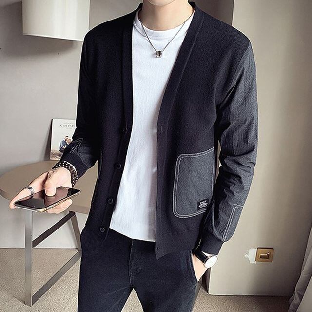 【予約販売】カーディガン ニット 異素材MIX メンズ アウター ベージュ ブラック シック カジュアル シック 男前 こなれ感 お洒落 韓国 トレンド 秋 冬 M/L/XL/2XL/3XL/4XL