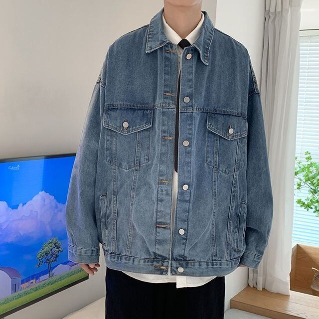 【予約販売】デニムジャケット Gジャン メンズ 刺繍 バックデザイン アウター オーバーサイズ ジージャン ブルー こなれ感 お洒落 韓国 トレンド 春 秋 冬 M/L/XL/2XL