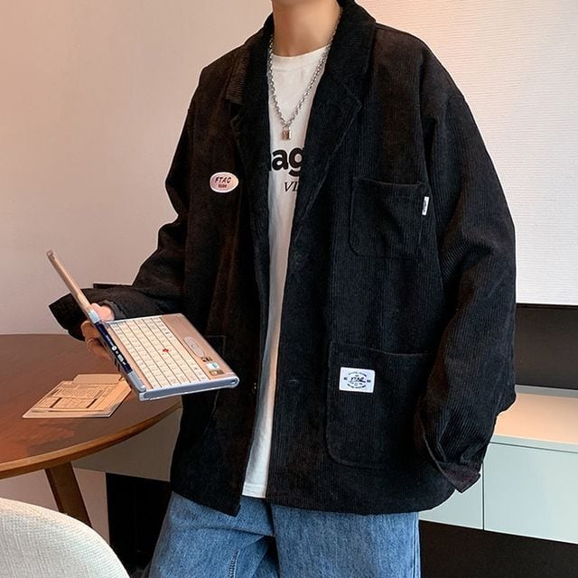 【予約販売】テーラードジャケット コーデュロイ アウター ジャケット メンズ ブラック ベージュ キャメル カジュアル こなれ感 お洒落 韓国トレンド 大きいサイズ 春 秋 冬 M/L/XL/2XL