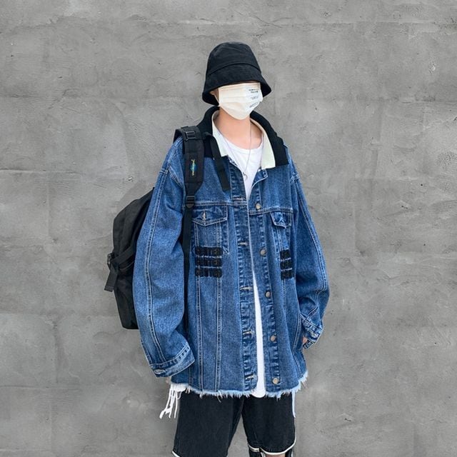 【予約販売】デニムジャケット Gジャン メンズ バックデザイン ダメージ加工 アウター ストリート オーバーサイズ ジージャン ブルー こなれ感 お洒落 韓国 トレンド 春 秋 冬 M/L/XL/2XL/3XL