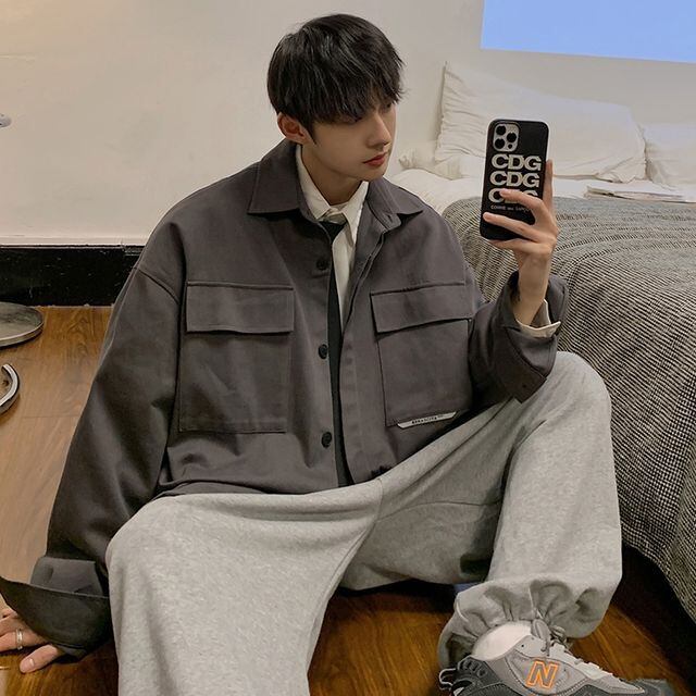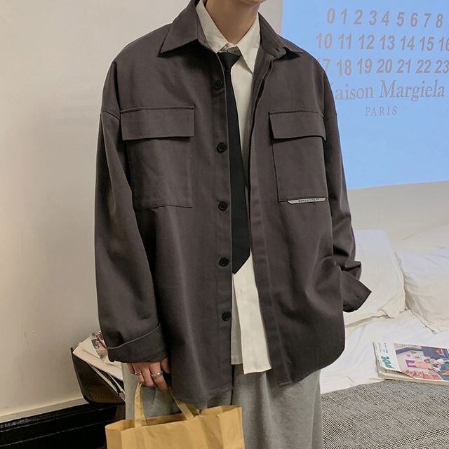 【予約販売】ブルゾン メンズ アウター ストリート ショート丈 オーバーサイズ ワイン グレー こなれ感 お洒落 韓国 トレンド 春 秋 冬 M/L/XL/2XL