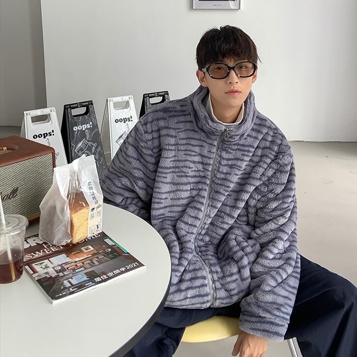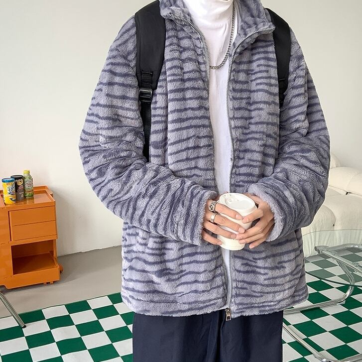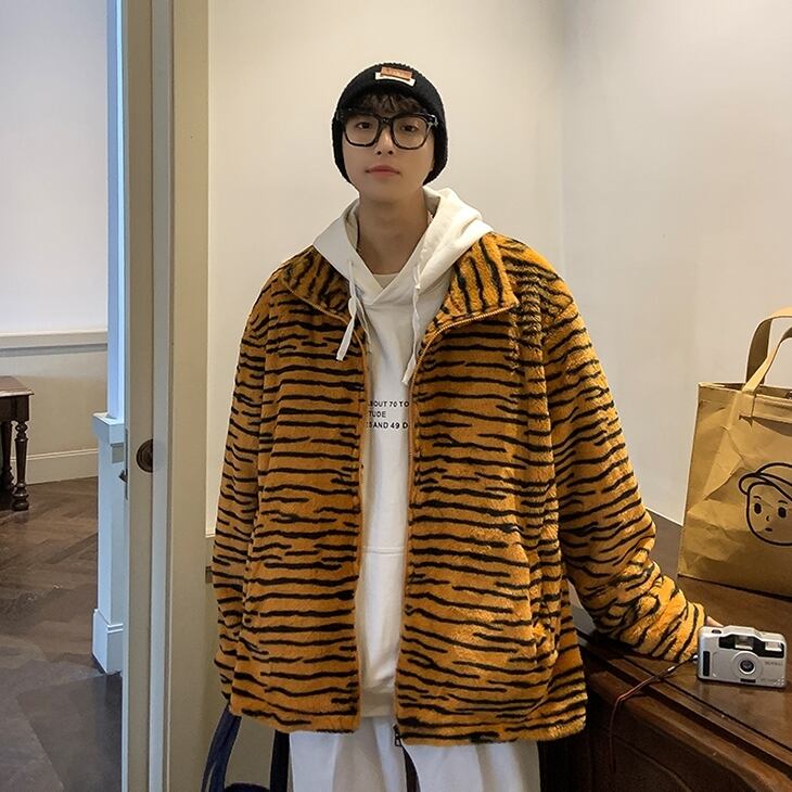 【予約販売】ブルゾン アニマル柄 ボア もこもこ タイガー柄 メンズ アウター ストリート ショート丈 オーバーサイズ ホワイト オレンジ グレー こなれ感 お洒落 韓国 トレンド 春 秋 冬 M/L/XL/2XL/3XL/4XL/5XL