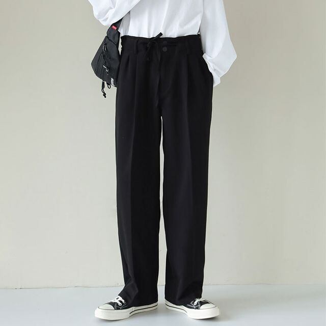 【予約販売】ワイドパンツ ボトムス メンズ 無地 モード シンプル ルーズストレート ブラウン ブラック カジュアル こなれ感 お洒落 韓国 トレンド 秋 冬 M/L/XL/2XL