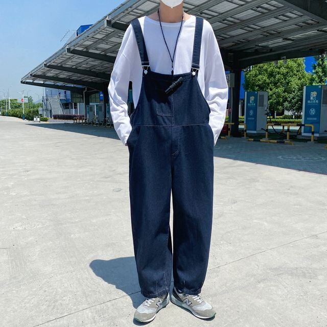【予約販売】オーバーオール つなぎ オールインワン サロペット ストレート ブルー ボトムス メンズ カジュアル こなれ感 お洒落 韓国 トレンド 秋 冬 M/L/XL/2XL