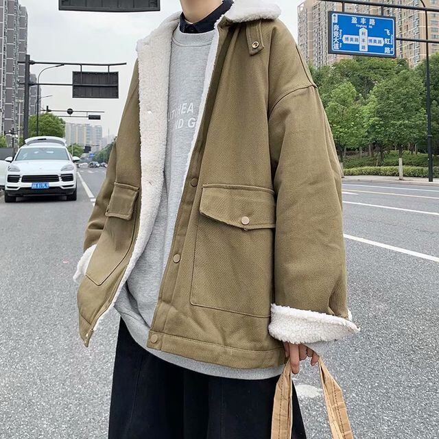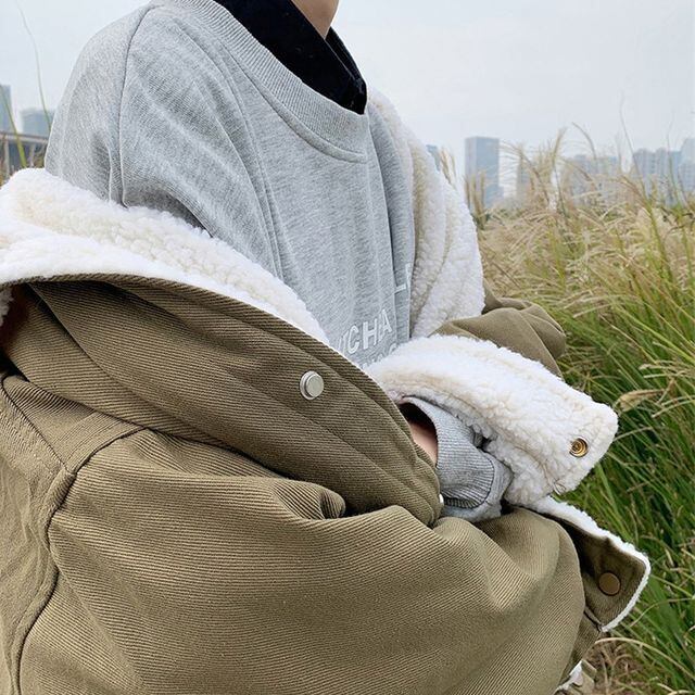 【予約販売】ジャケット 裏ボア 無地 ミリタリー カーキ ブラック ベージュ ショート丈 防寒 お洒落 こなれ感 ベーシック 秋冬 大きいサイズ M/L/XL/2XL