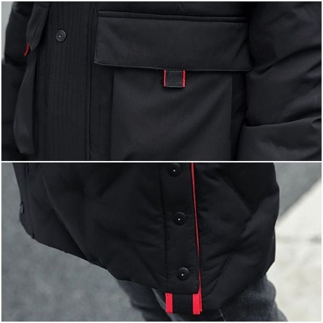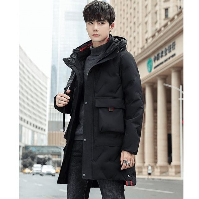 【予約販売】ダウンジャケット メンズ 無地 フード付き ダウンコート ブラック ベージュ ミドル丈 防寒 お洒落 こなれ感 ベーシック 秋冬 大きいサイズ L/XL/2XL/3XL/4XL