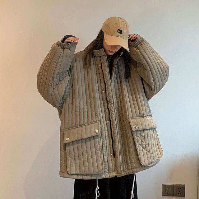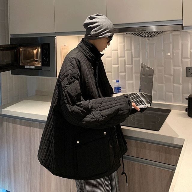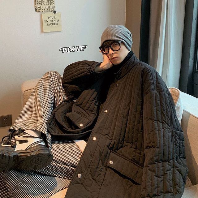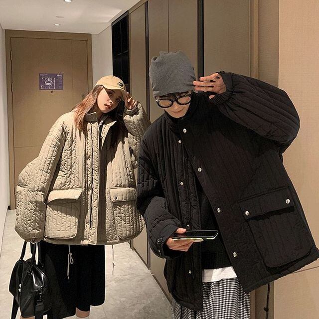 【予約販売】キルティングジャケット アウター 防寒 ブルゾン メンズ ユニセックス ショート丈 ストリート カーキ ブラック 防寒 お洒落 こなれ感 ベーシック 秋冬 大きいサイズ M/L/XL/2XL