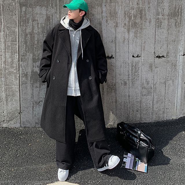 【予約販売】トレンチコート メンズ アウター シンプル 無地 シック 綺麗め ゆったり ブラック ロング丈 冬コート 防寒 ビジネス 通勤 防寒 お洒落 こなれ感 ベーシック 秋冬 大きいサイズ M/L/XL/2XL