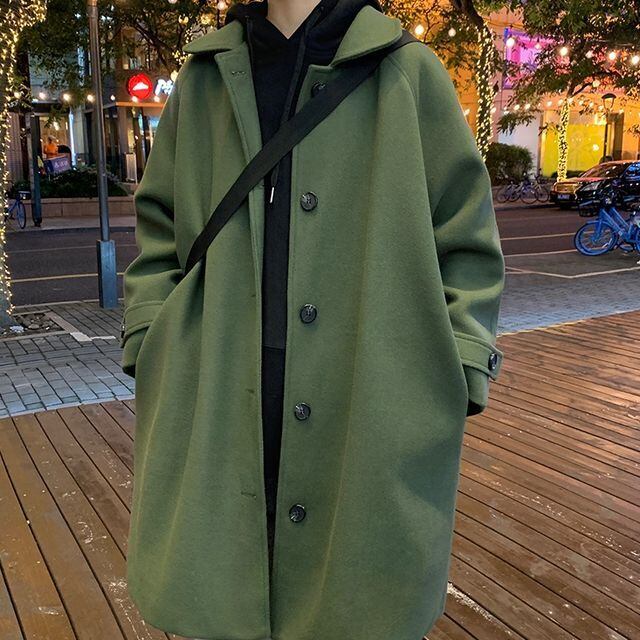 【予約販売】コート メンズ シンプル 無地 シック 綺麗め ゆったり ブラック グレー カーキ ミドル丈 冬コート 防寒 ビジネス 通勤 防寒 お洒落 こなれ感 ベーシック 秋冬 大きいサイズ M/L/XL/2XL