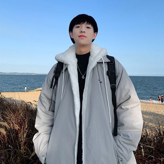 【予約販売】コート メンズ ファー フード付き 無地 オーバーサイズ グレー ブルー ブラック ショート丈 コート ジャケット 防寒 お洒落 こなれ感 ベーシック 秋冬 大きいサイズ M/L/XL/2XL