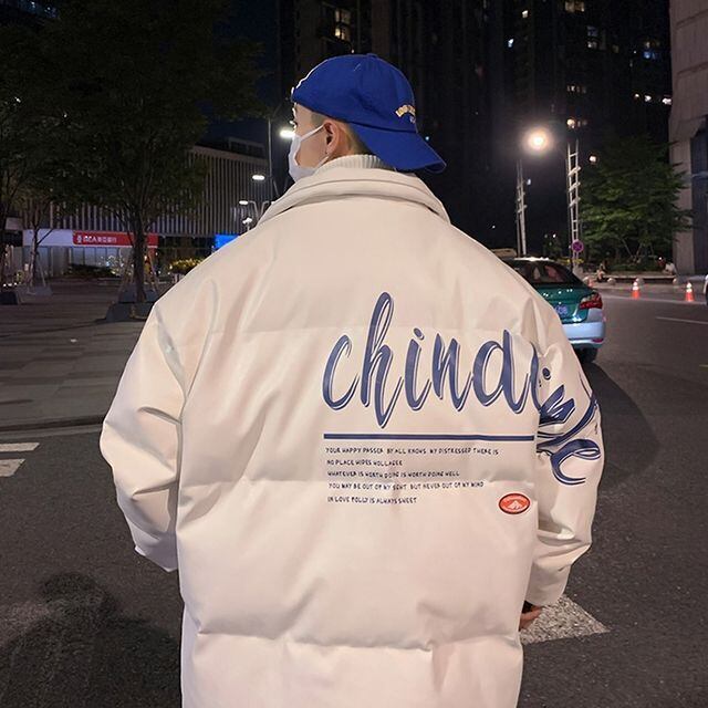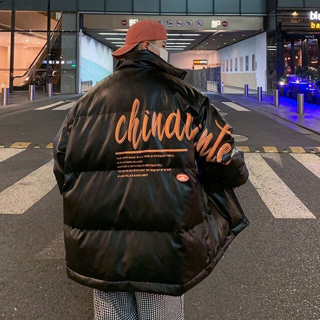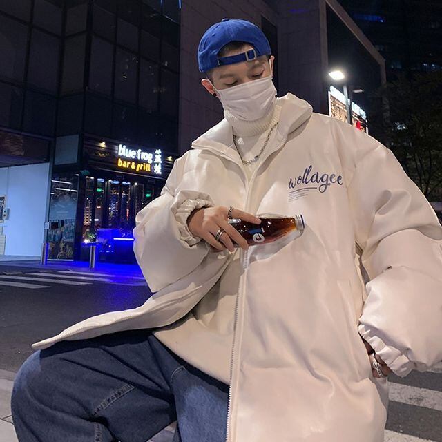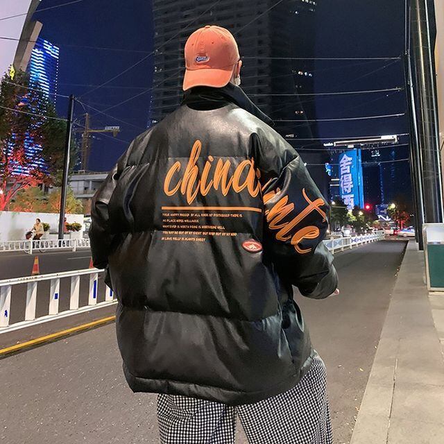 【予約販売】ダウンジャケット メンズ バックプリント レザー 無地 オーバーサイズ ホワイト ブラック ショート丈 コート ジャケット 防寒 お洒落 こなれ感 ベーシック 秋冬 大きいサイズ M/L/XL/2XL