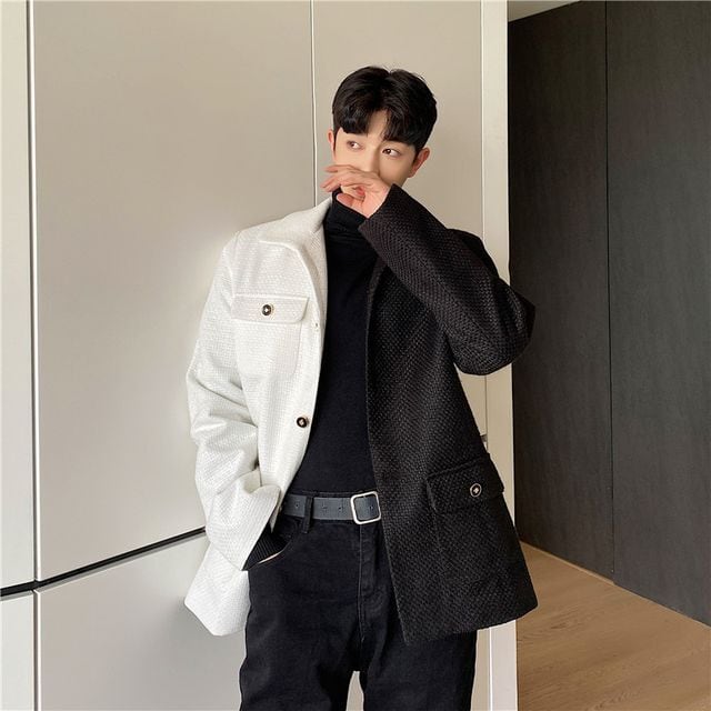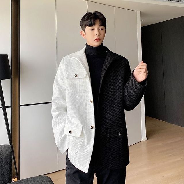【予約販売】ジャケット メンズ バイカラー ツートン モノクロ バイカラー 綺麗め ブラック ホワイト お洒落 こなれ感 ベーシック 秋冬 M/L/XL