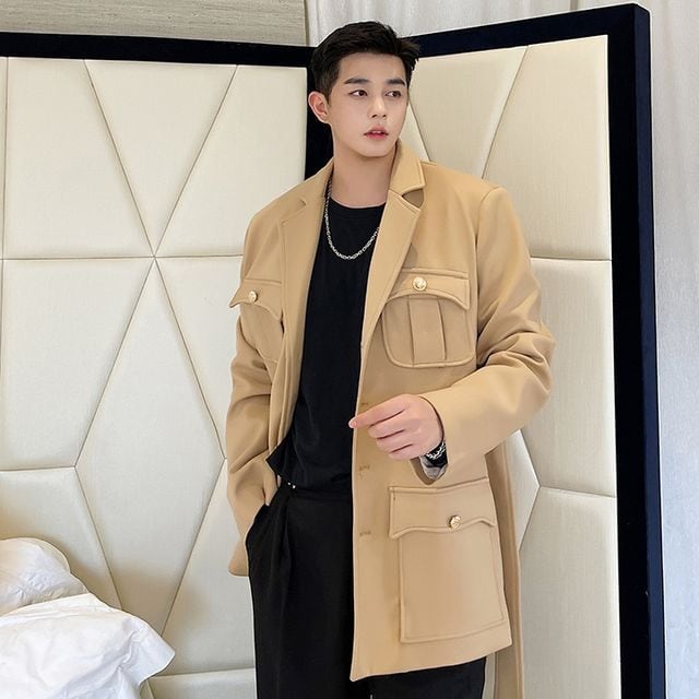 【予約販売】コート メンズ レトロ 無地 シック ウエストマーク 綺麗め ブラック ベージュ グリーン ショート丈 冬コート 防寒 ビジネス 通勤 防寒 お洒落 こなれ感 ベーシック 秋冬 大きいサイズ M/L/XL