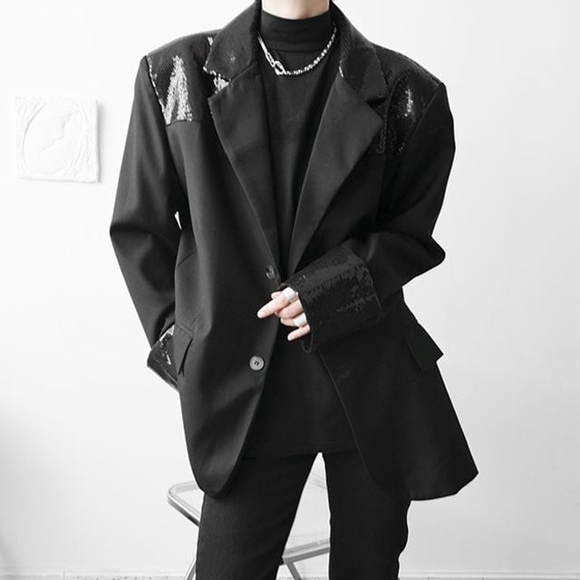 【予約販売】テーラードジャケット モノトーン スパンコール キラキラ ジャケット メンズ ブラック ホワイト フォーマル パーティー 結婚式 二次会 パーティー エレガント 韓国トレンド 大きいサイズ 春 秋 冬 M/L/XL/2XL
