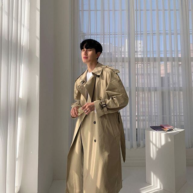 【予約販売】トレンチコート ロング丈 メンズ 無地 シンプル 男前 シック 韓国 オーバーサイズ 綺麗め ベージュ 冬コート 防寒 ビジネス 通勤 防寒 お洒落 こなれ感 ベーシック 秋冬 大きいサイズ M/L/XL/2XL