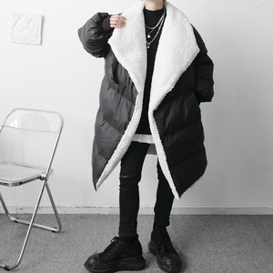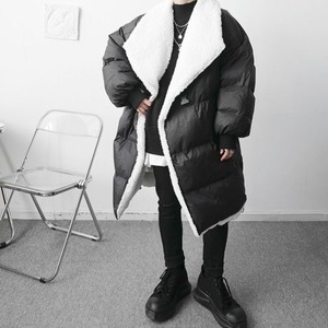 【予約販売】ダウンコート メンズ ボア ロング丈 ビッグシルエット 無地 オーバーサイズ ブラック コート ジャケット 防寒 お洒落 こなれ感 ベーシック 秋冬 大きいサイズ M/L/XL/2XL