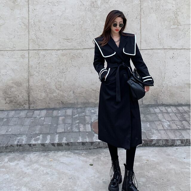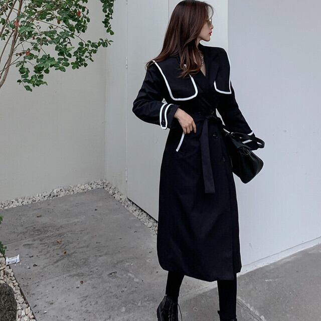 コート レディース ミドル丈 アウター ライン ウエストマーク 美人 おしゃれ きれい目 ネイビー S/M/L