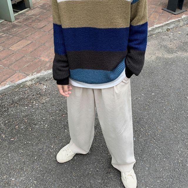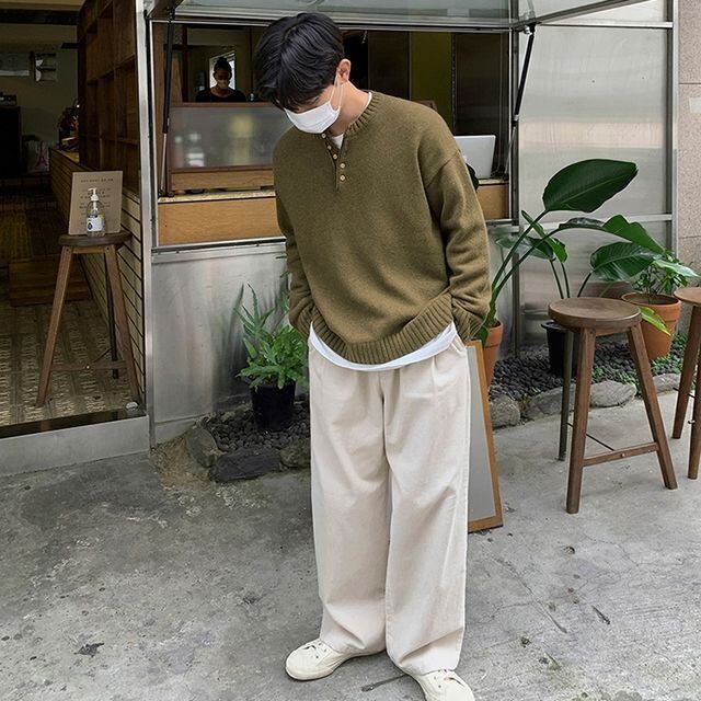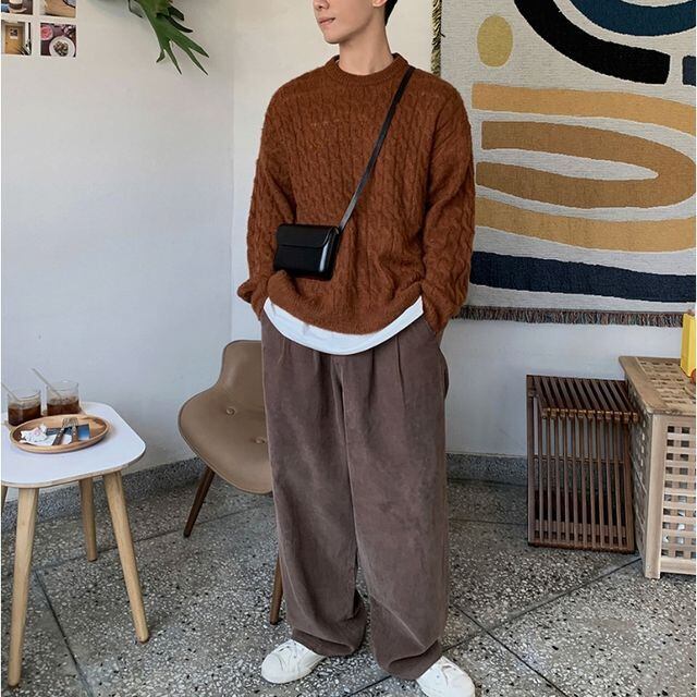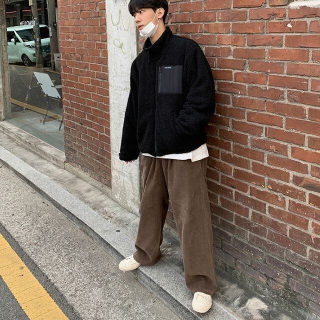 【予約販売】ワイドパンツ ボトムス メンズ レトロ 無地 コーデュロイ シンプル ルーズストレート ベージュ ブラウン カジュアル こなれ感 お洒落 韓国 トレンド 秋 冬 M/L/XL/2XL