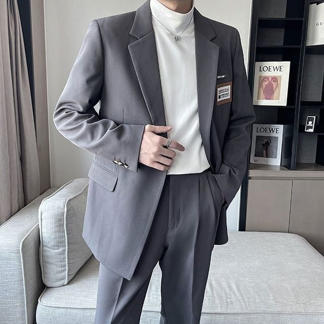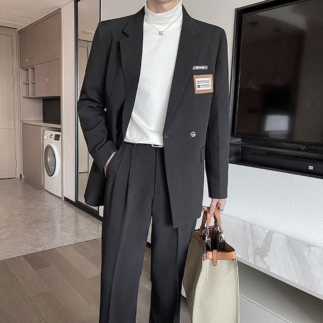 【予約販売】メンズ スーツ ダブル レトロ タグ 無地 シック スリム きれいめ 男前 グレー グリーン ブラック フォーマル ジャケット パンツ セット セットアップ パーティ 二次会 同窓会 結婚式 韓国 トレンド 大きいサイズ S/M/L/XL