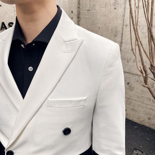 【予約販売】メンズ スーツ ダブル レトロ ツートン バイカラー シック スリム きれいめ 男前 ホワイト レッド フォーマル ジャケット パンツ セット セットアップ パーティ 二次会 同窓会 結婚式 韓国 トレンド 大きいサイズ M/L/XL/2XL
