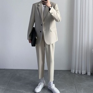 【予約販売】メンズ スーツ シングル シンプル 無地 シック スリム きれいめ 男前 オフホワイト フォーマル ジャケット パンツ セット セットアップ パーティ 二次会 同窓会 結婚式 韓国 トレンド 大きいサイズ S/M/L