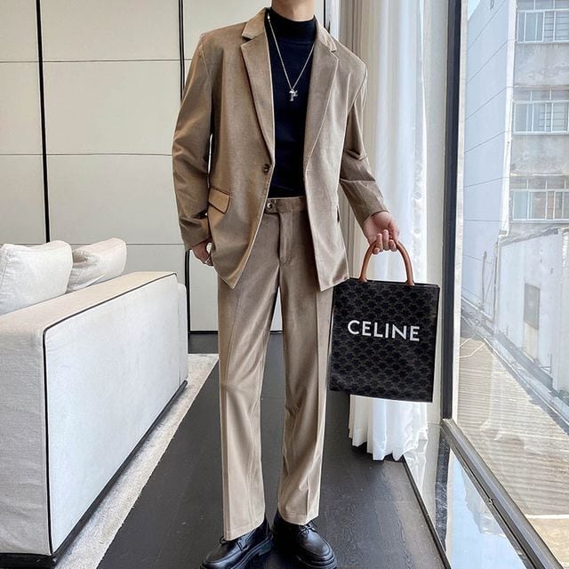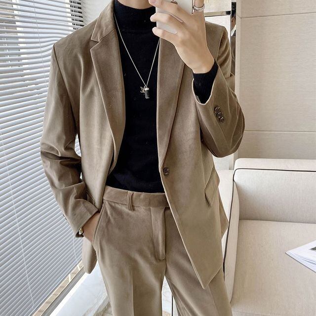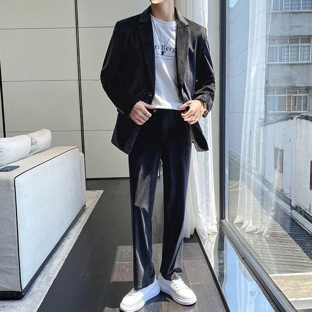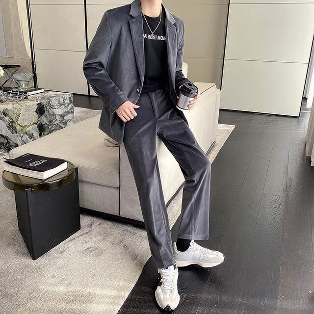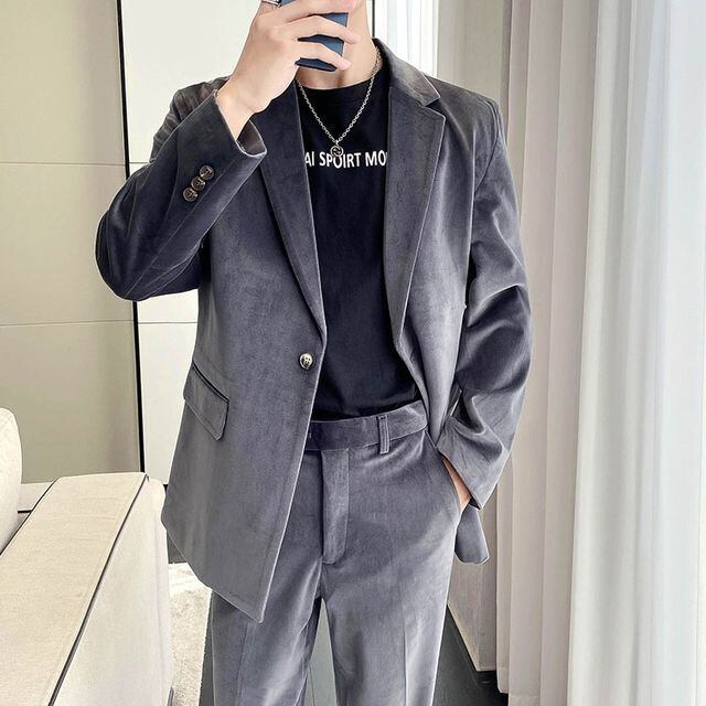 【予約販売】メンズ スーツ ベルベット レトロ シック スリム きれいめ 男前 ブラック グレー コーヒー フォーマル ジャケット パンツ セット セットアップ パーティ 二次会 同窓会 結婚式 韓国 トレンド 大きいサイズ M/L/XL/2XL