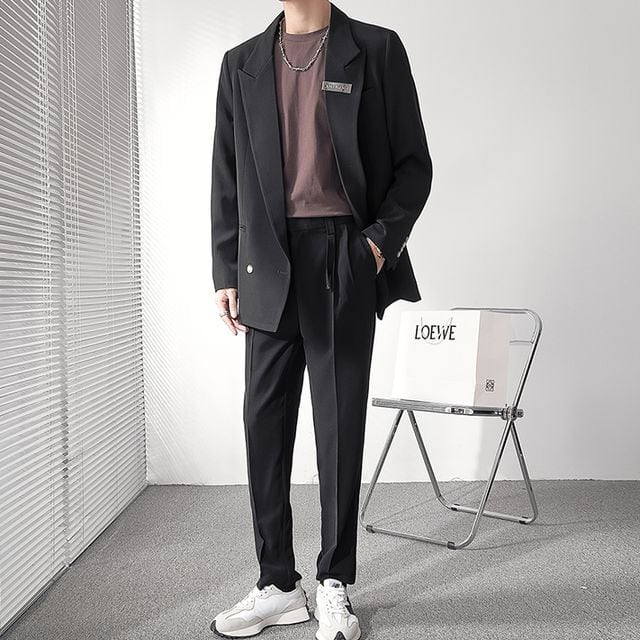 【予約販売】メンズ スーツ 男前 ブラック オフホワイト コーヒー フォーマル ジャケット パンツ セット セットアップ パーティ 二次会 同窓会 結婚式 韓国 トレンド 大きいサイズ M/L/XL/2XL