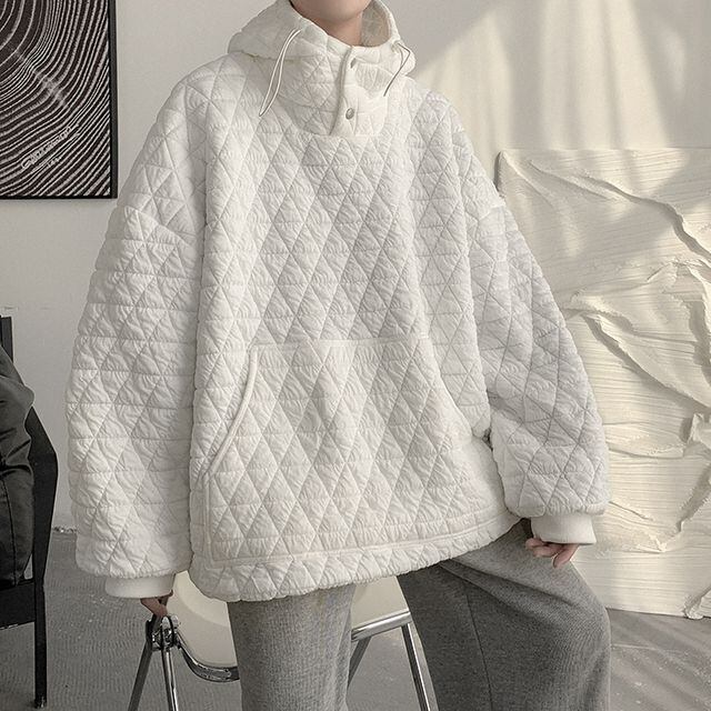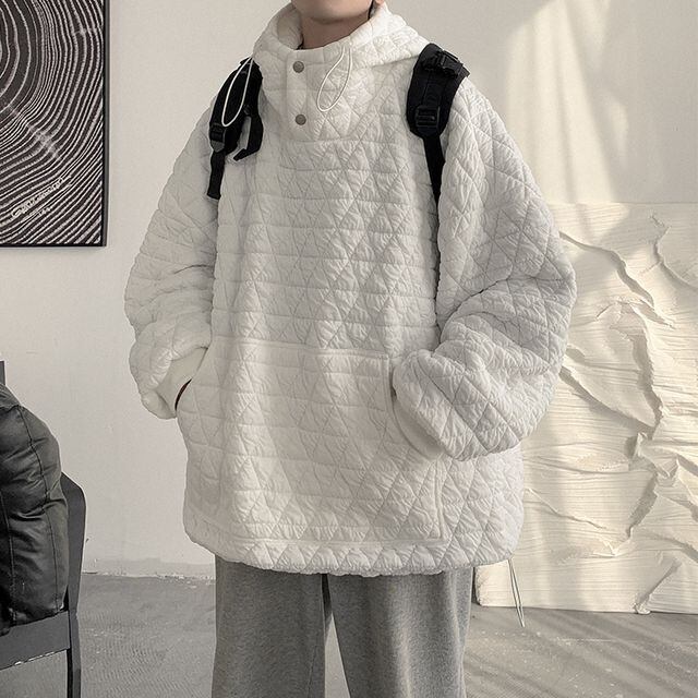 【予約販売】パーカー プルオーバー メンズ アウター 防寒 オーバーサイズ ホワイト グレー ブラック カジュアル 男前 こなれ感 お洒落 韓国 トレンド 春 秋 冬 M/L/XL
