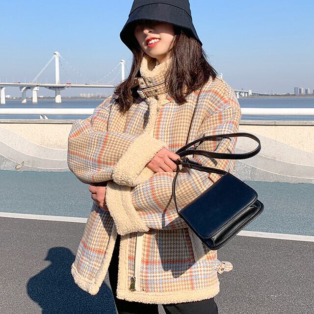 コート レディース アウター ショート丈 もこもこ かわいい おしゃれ フェミニン チェック柄 イエロー/ブルー S/M/L/XL/2XL