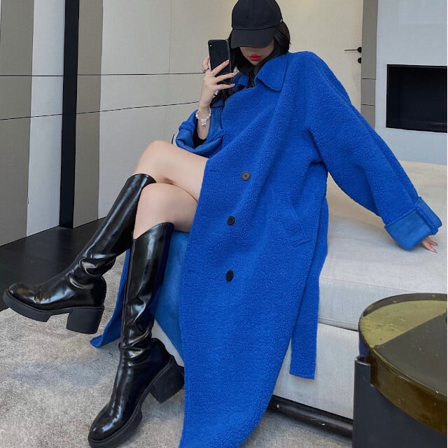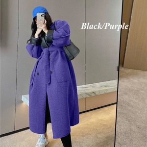 ロングコート レディース アウターウエストベルト ブルー/ブラウン/グリーン/ブラック/ ブラック・ブルー/ブラック・ブラウン/ ブラック・グリーン/ブラック・パープル