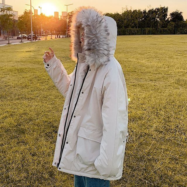 【予約販売】ブルゾン コート ファー フード付き 無地 オーバーサイズ ミリタリー オフホワイト ブラック ベージュ ショート丈 コート ジャケット 防寒 お洒落 こなれ感 ベーシック 秋冬 大きいサイズ M/L/XL/2XL