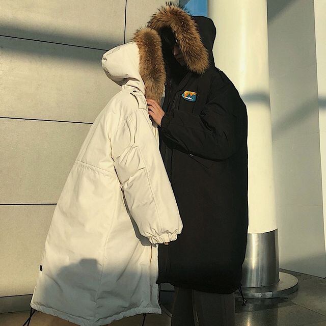【予約販売】ロングダウンコート ファーフード アウター 無地 防寒 メンズ ユニセックス ストリート ブラック グレー ホワイト 防寒 お洒落 こなれ感 ベーシック 秋冬 大きいサイズ S/M/L/XL/2XL/3XL