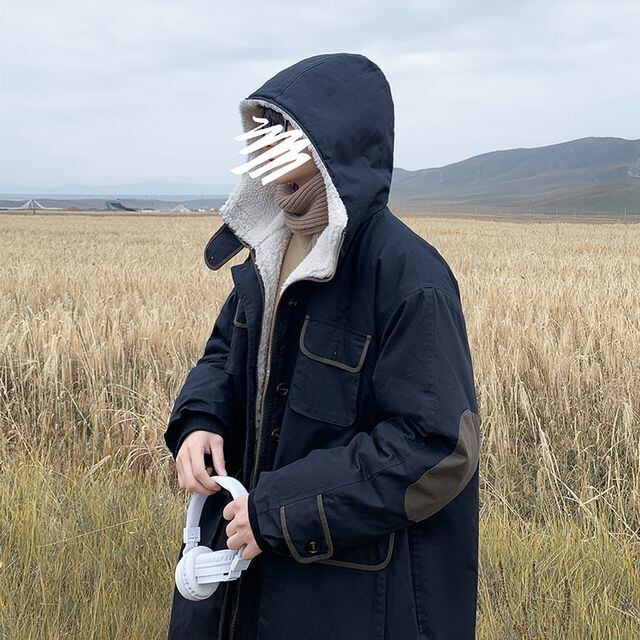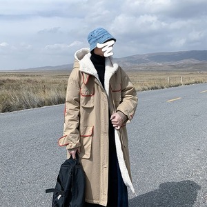 【予約販売】冬コート メンズ アウター ミディアム丈 レトロ 裏ボア フード付 カジュアル ベージュ カーキ ブラック 男前 こなれ感 お洒落 韓国 トレンド 秋 冬 M/L/XL/2XL/3XL