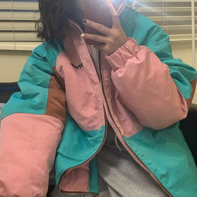 ブルゾン アウター レディース ジャンパー オーバーシルエット ストリート カジュアル おしゃれ 配色 グリーン×ピンク M/L