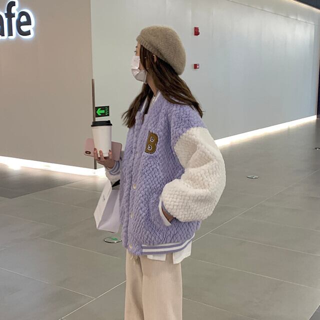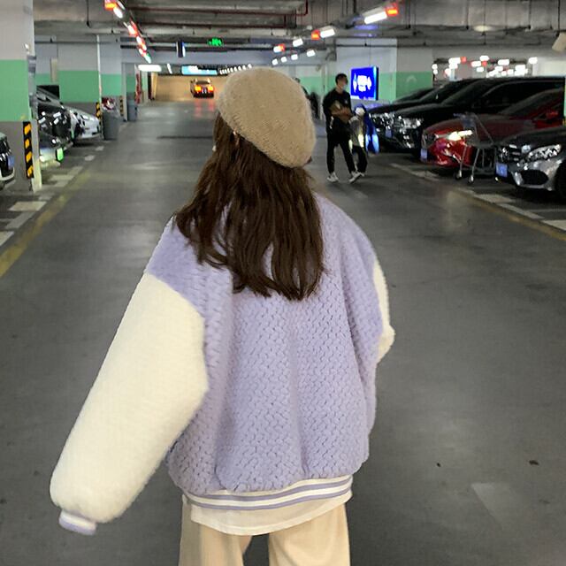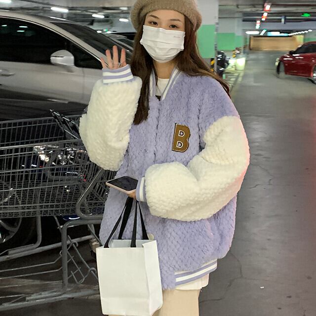 スタジャン レディース アウター シンプル ロゴ オーバーシルエット かっこいい あたたか 防寒 真冬 パープル パステルカラー
