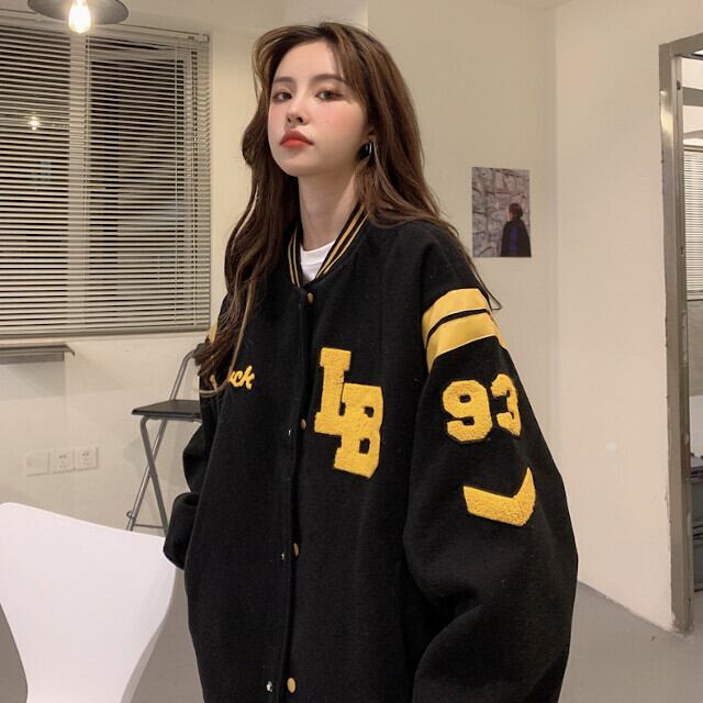 スタジャン レディース アウター オーバーシルエット メンズライク ストリート カジュアル ロゴ ブラック/ベージュ M/L/XL