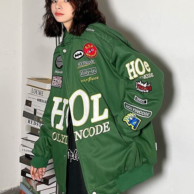 スタジャン レディース アウター オーバーシルエット かっこいい アメリカン メンズライク おしゃれ グリーン/ブラック S/M/L/XL